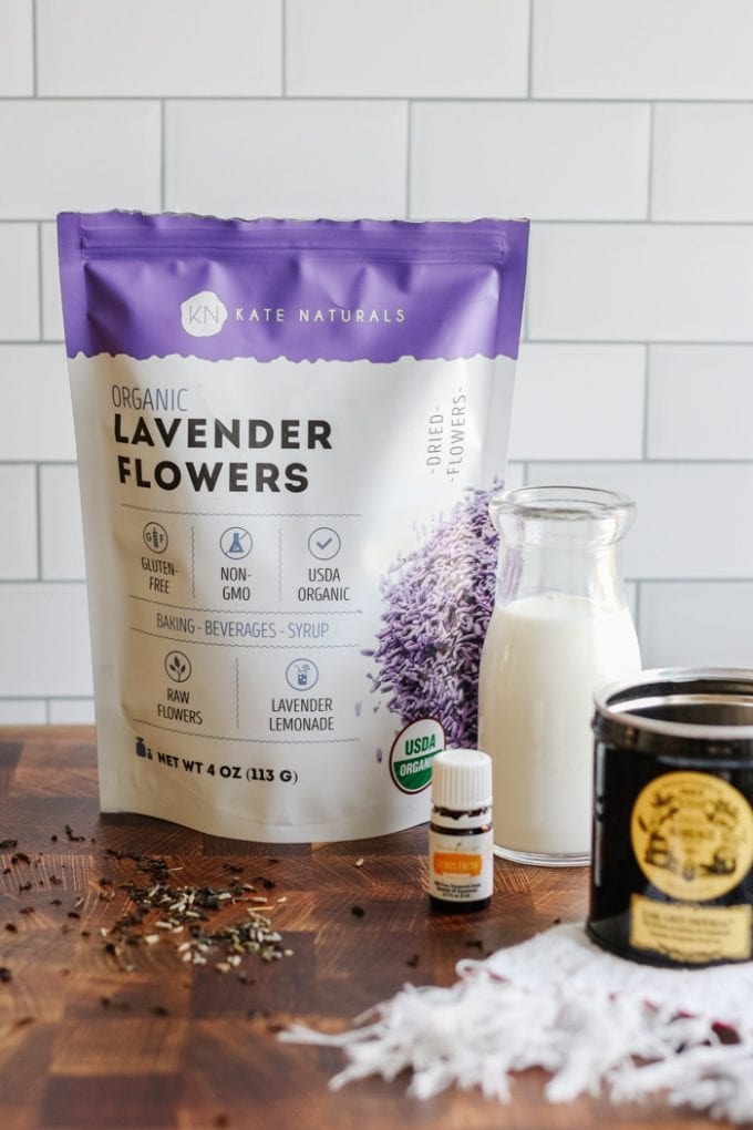 - Brew a cup of Earl Grey Tea. If using dried lavender, add to the cup with the tea bag. Or place the loose tea leaves and lavender in a tea strainer.