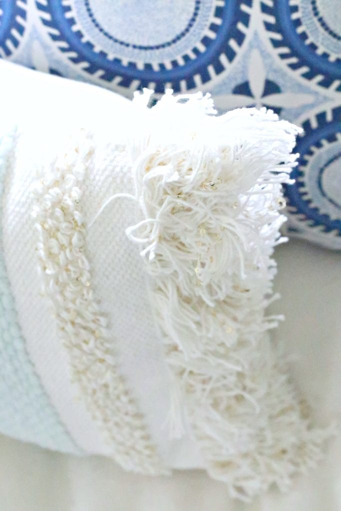 Now as you can see, there is no blue in my rug that dominates the color scheme in our living room. I have had my eye on this beauty for a long time but didn’t want to commit to the navy color scheme, so when they came out with the same rug in ivory I was sold!