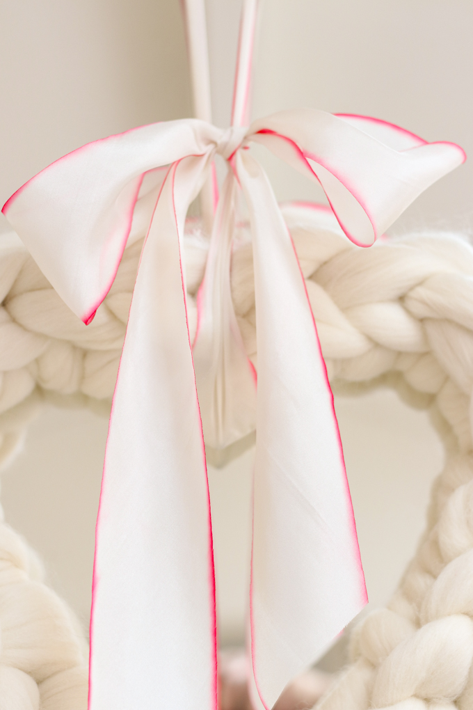 If you watched my TikTok video you will notice that I originally played with the idea of adding an XOXO banner. I ended up taking it off and adding it to my chunky yarn wreath that is on my front door instead!