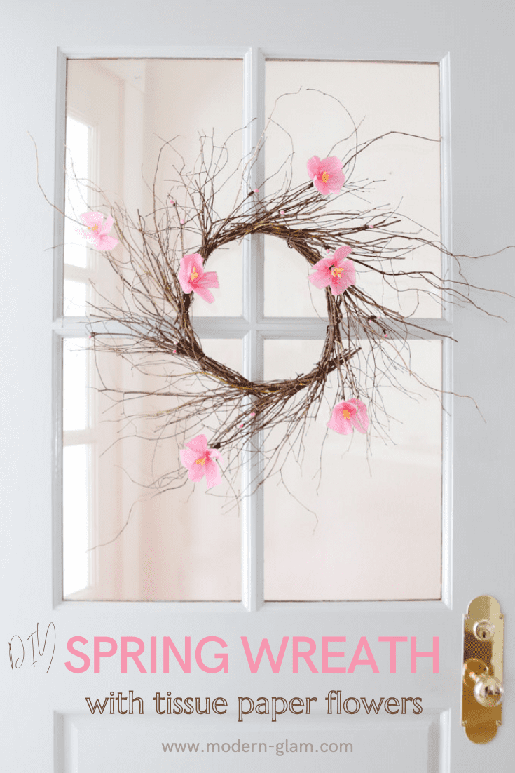Now, you have a simple, modern spring wreath for your front door that is reminiscent of the early spring blooms that are popping on the trees.